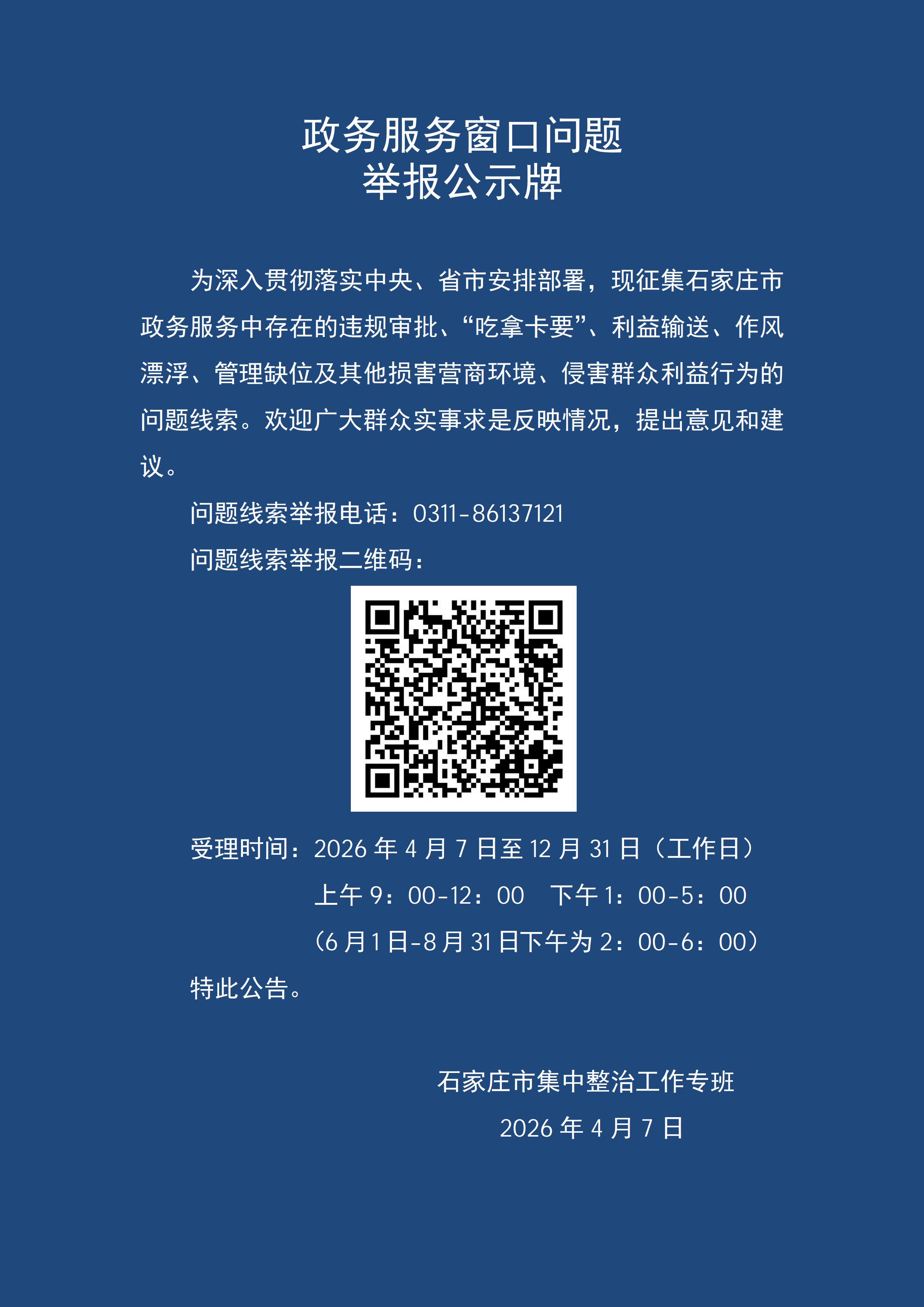 政务服务窗口问题举报公示牌